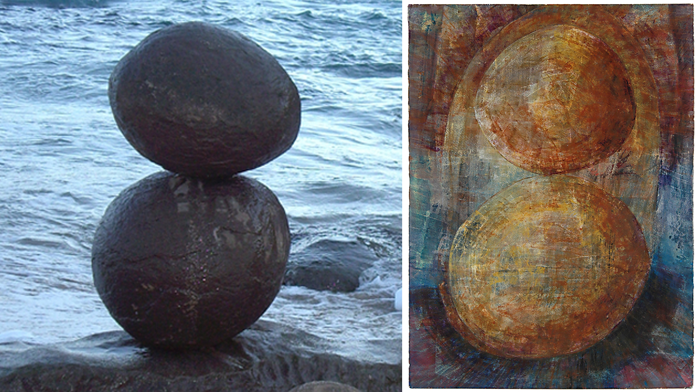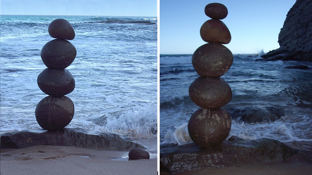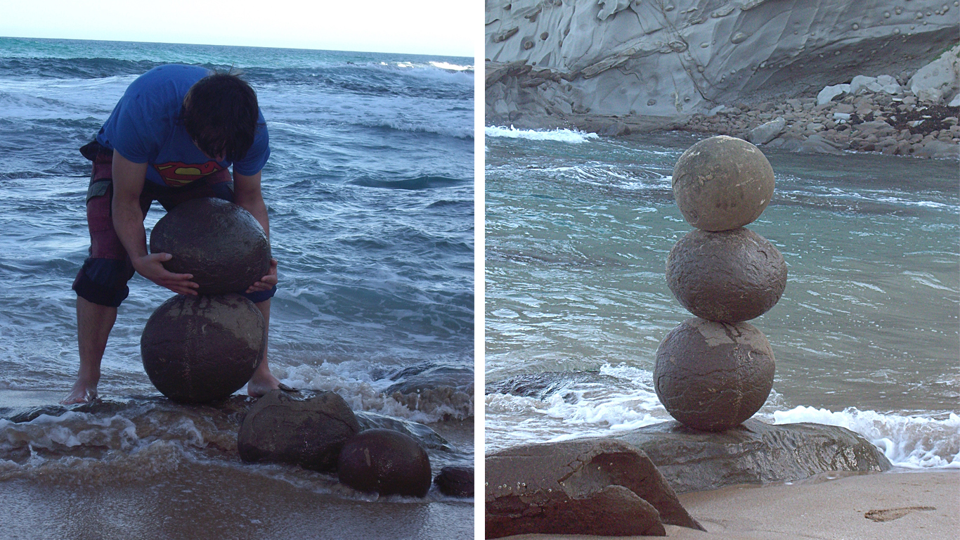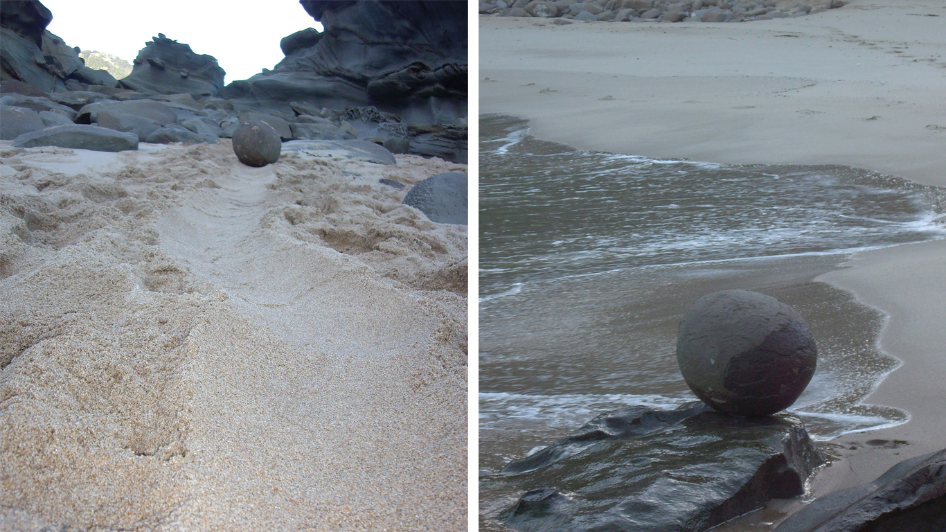 Balance was created alongside my the artist-in-schools residency at Lavers Hill P-12 College. In talking with the art teacher from the school she told me about a small local beach called cannonball cove. The cove is only accessible at low tide and draws its name from the spherical stones that occasionally drop from the sandstone cliff as it slowly erodes. In visiting the site I felt very aware of the time pressure created by the tidal movements and the potential to get caught in the cove. I created this ephemeral work purposefully in the tidal zone to breakdown with the return of the lapping waves. The demise of the work was also a reminder of my own need to vacate the cove.