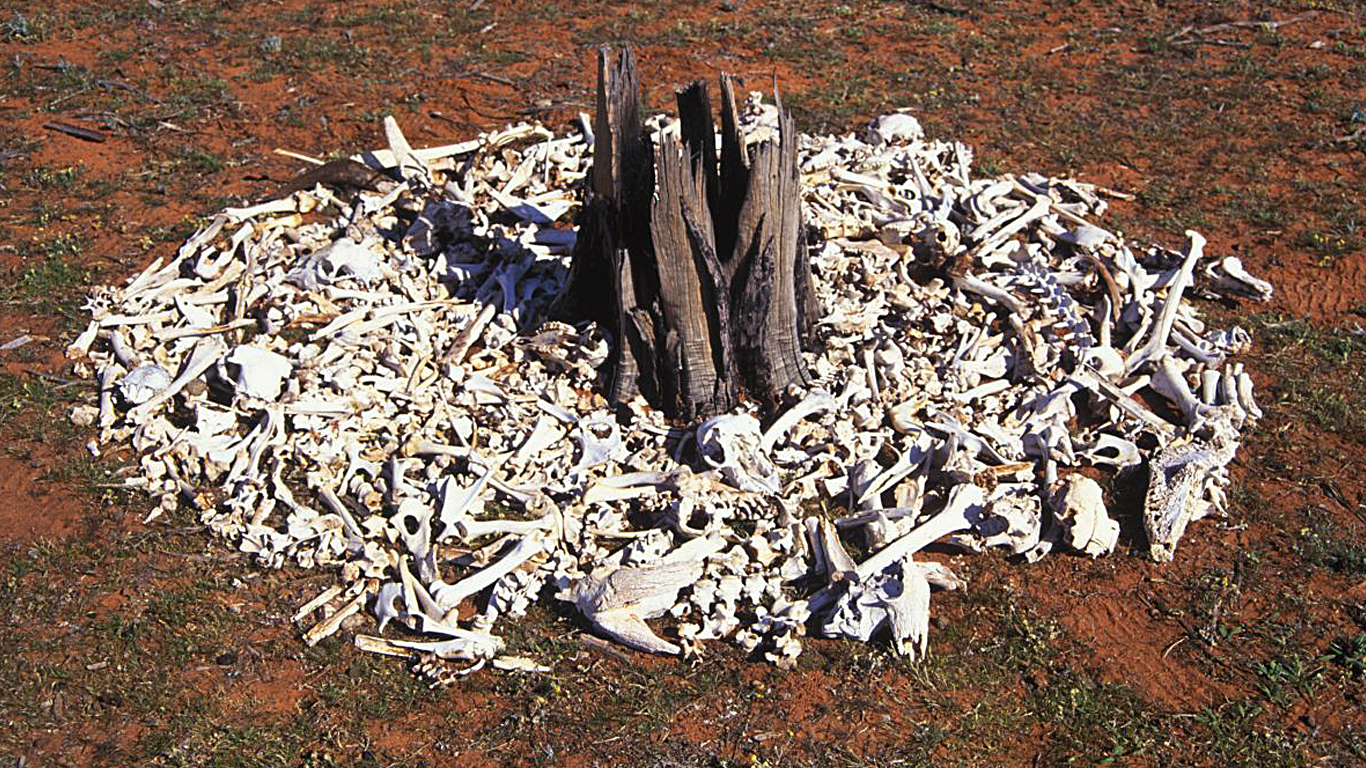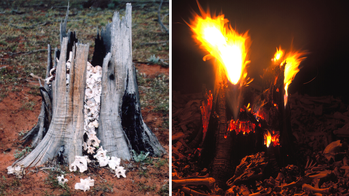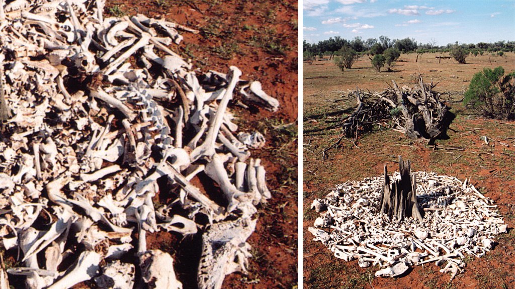Like Bone Shelter and Bone Circle/Fire, this work emerged from a residency deep within the arid zone of western New South Wales. The landscape’s harshness draws attention to the fragile equilibrium that sustains life here—a delicate balance easily unsettled by forces such as drought. These three works resonate with the fleeting nature of existence, unfolding through materials gathered directly from the place itself.