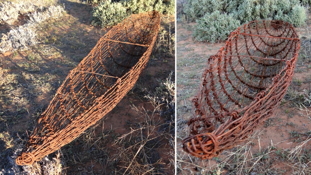 In this piece the vessel is left precariously in the arid landscape, past hope but not at final ruin.