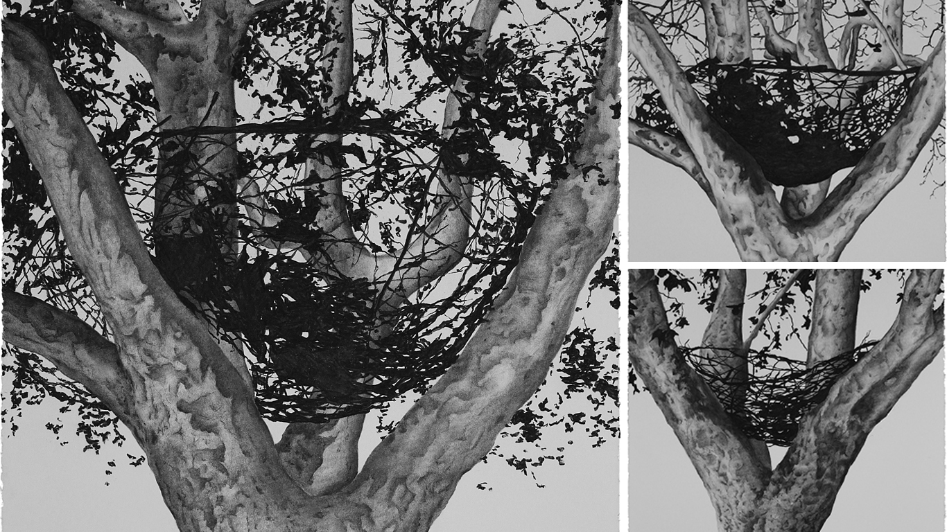 Platanus Acerfolia: Woven nest: charcoal drawing series